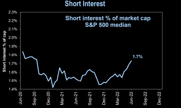 19. Short interest rising. Overall short interest (as a % of market cap) is at an 18-month high.