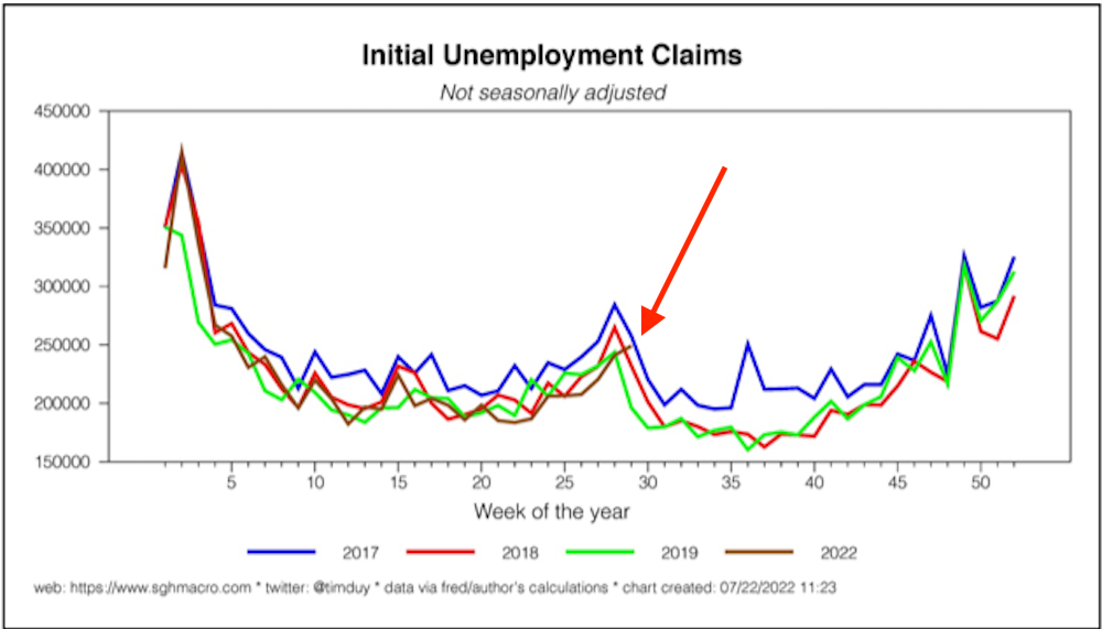 8. Unadjusted initial jobless claims. Sam Ro will do a better job explaining than I will, but the gist, from Tim Duy, chief U.S. economist at SGH Macro Advisors, is “My main point is that I think we should dismiss the rise in claims so far this year as being an artifact of the seasonal adjustment process; the future path of claims likely has more information value.”