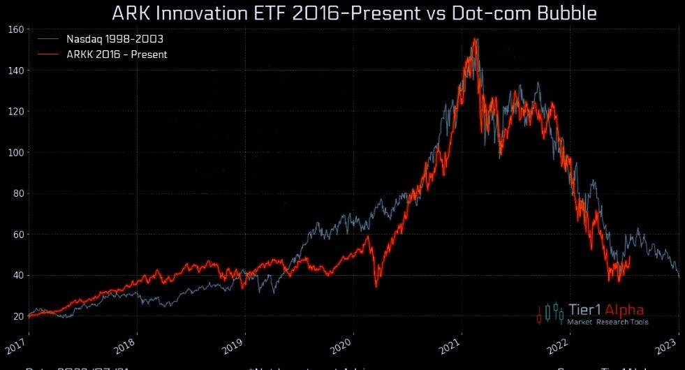 25. Speaking of the Dotcom bubble. ARKK 0.00%↑ has provided us with a pretty solid analogy for what might be in store for the Nasdaq.