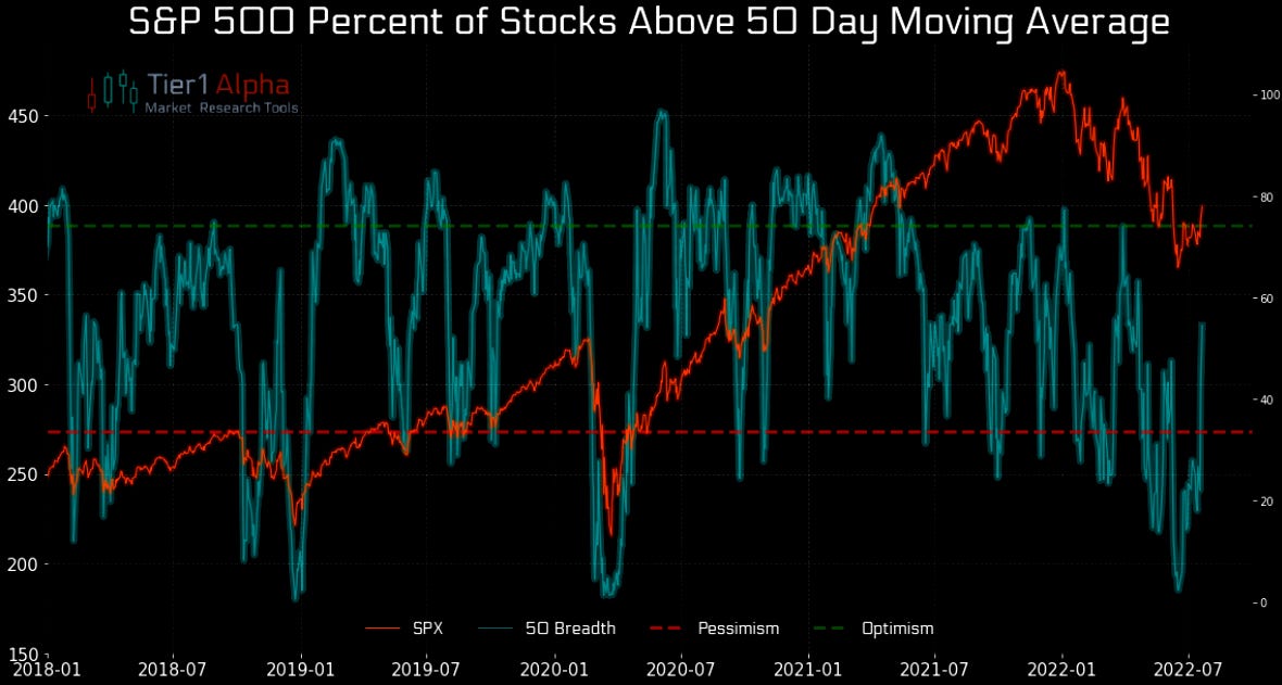 18. Solid breadth. Nearly 60% of S&P 500 stocks are above their 50-day moving average, reflecting broad market gains.