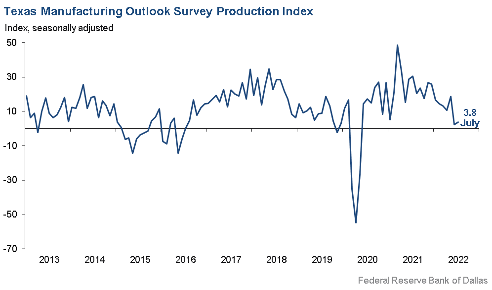 7. Dallas Fed Manufacturing. General business activity index for manufacturing in Texas dropped 22.6 to 3.8—the lowest reading since May 2020. A reading below 0 indicates a contraction.
