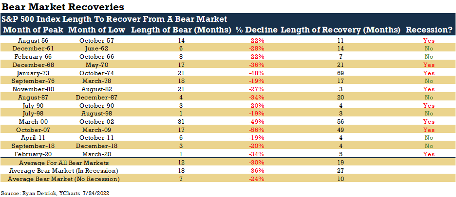 26. And finally—bear market recovery times. The average bear market recovery takes 19 months. However, when the market drops less than 30%, recovery times are historically much quicker.