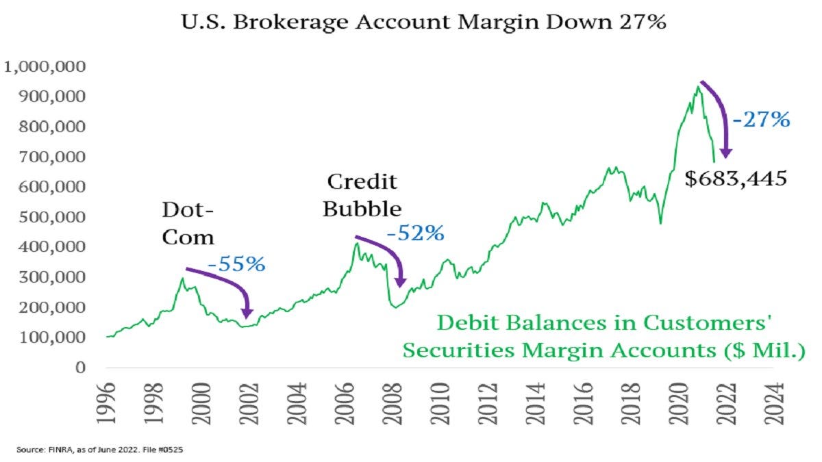24. Not bad enough yet? The decline in US broker account margin was much worse than during the Dotcom bubble and Global Financial Crisis.