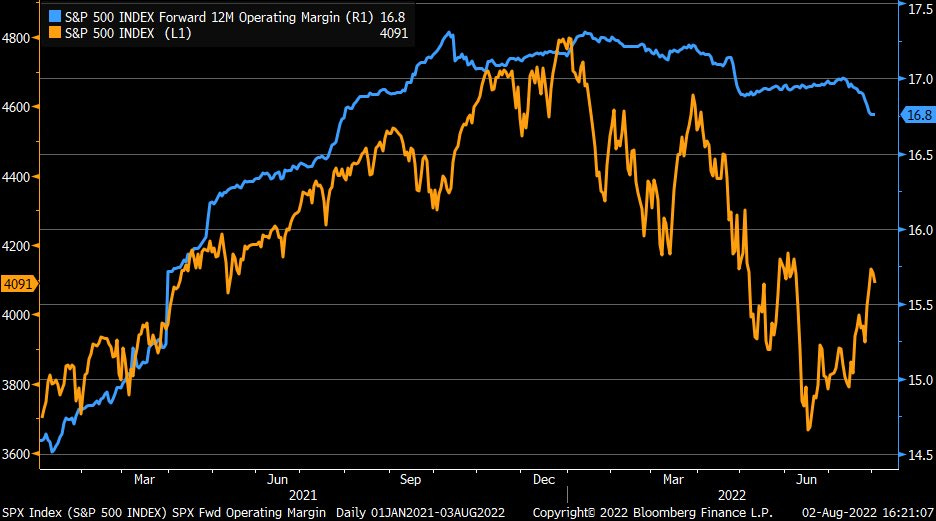29. S&P operating margins. The S&P 500 isn’t buying the drop in forward operating margins (yet?).