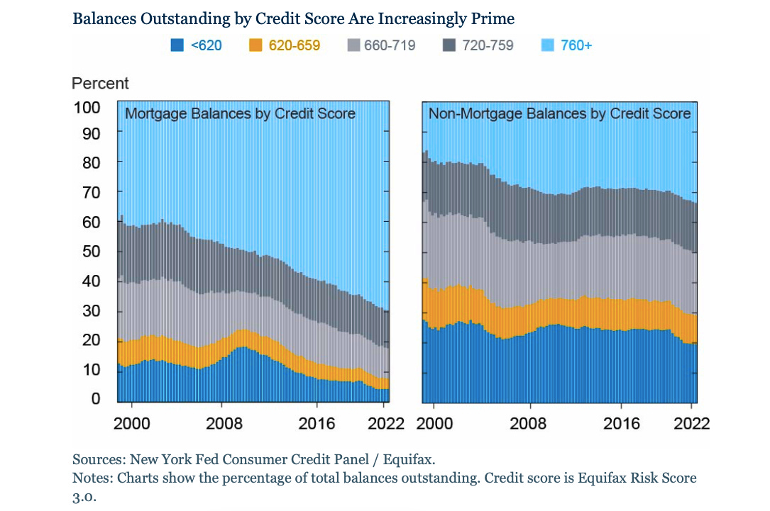 6. Higher quality borrowers. On the other hand, “lenders have been much more disciplined with their lending practices. A growing share of debt being issued is going to borrowers with high credit scores”.