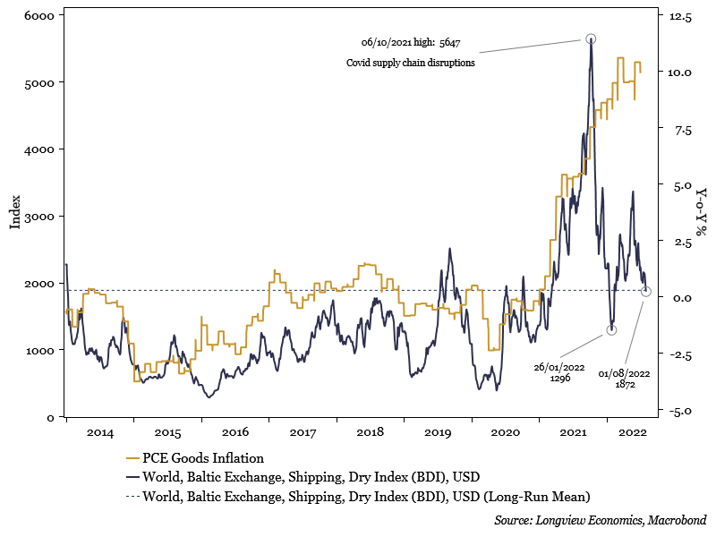 9. Supply chain snarls subside. “The Baltic Dry Index, a key measure of global shipping costs, is back at its long-run mean as supply disruptions continue to ease.”