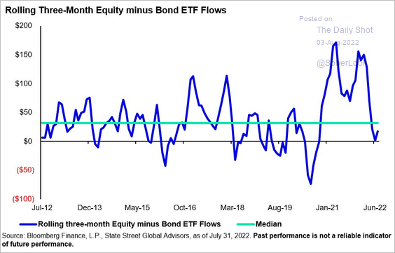 19. Equity vs Bond ETFs. “Equity ETF inflows were well below historical averages last month, while bond funds attracted fresh capital.”