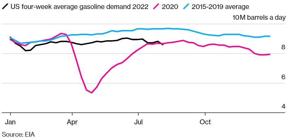 2. Less gas demand now vs. peak pandemic. A combination of higher prices and Work From Home is resulting in less drivers?