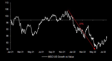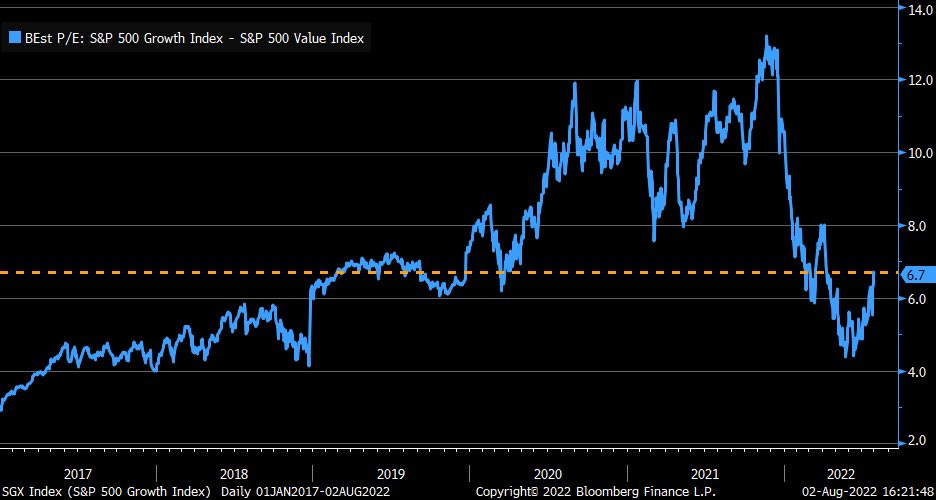 26. Growth vs. Value (I). Growth stock valuations are on the rise but are well below the exuberant levels prior to 2022.