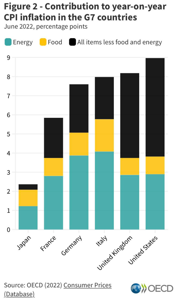 8. G7 inflation. Here’s how much the volatile energy and food categories have contributed to inflation in the G7 countries (sans Canada).