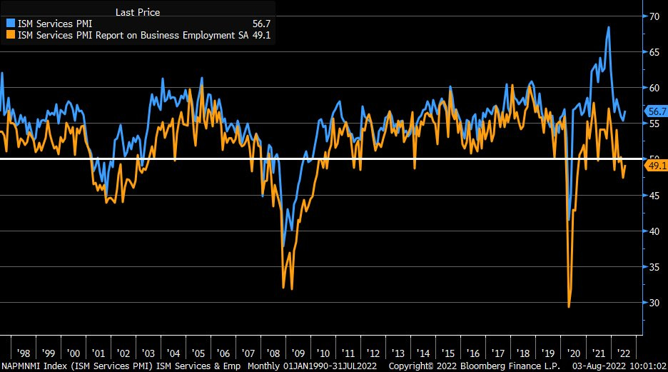 11. ISM Services Prices Paid down. The prices paid index dropped in July to its lowest level since February 2021—a positive sign for easing inflation.