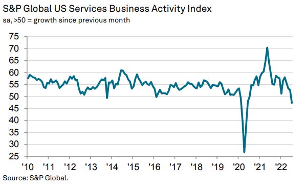 14. S&P Global US Services PMI surprises down. On the same day that ISM Services PMI expanded more than expected, another gauge for services activity surprised us with its first contraction since June 2020.