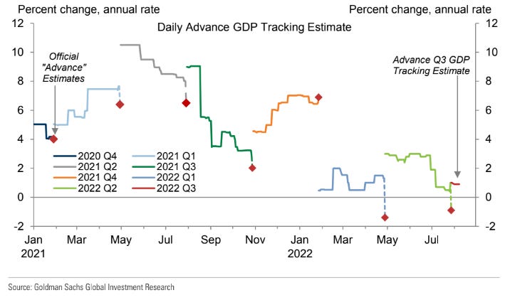 7. Q3 GDP. Goldman Sachs is estimating GDP growth of 0.9% in the third quarter.