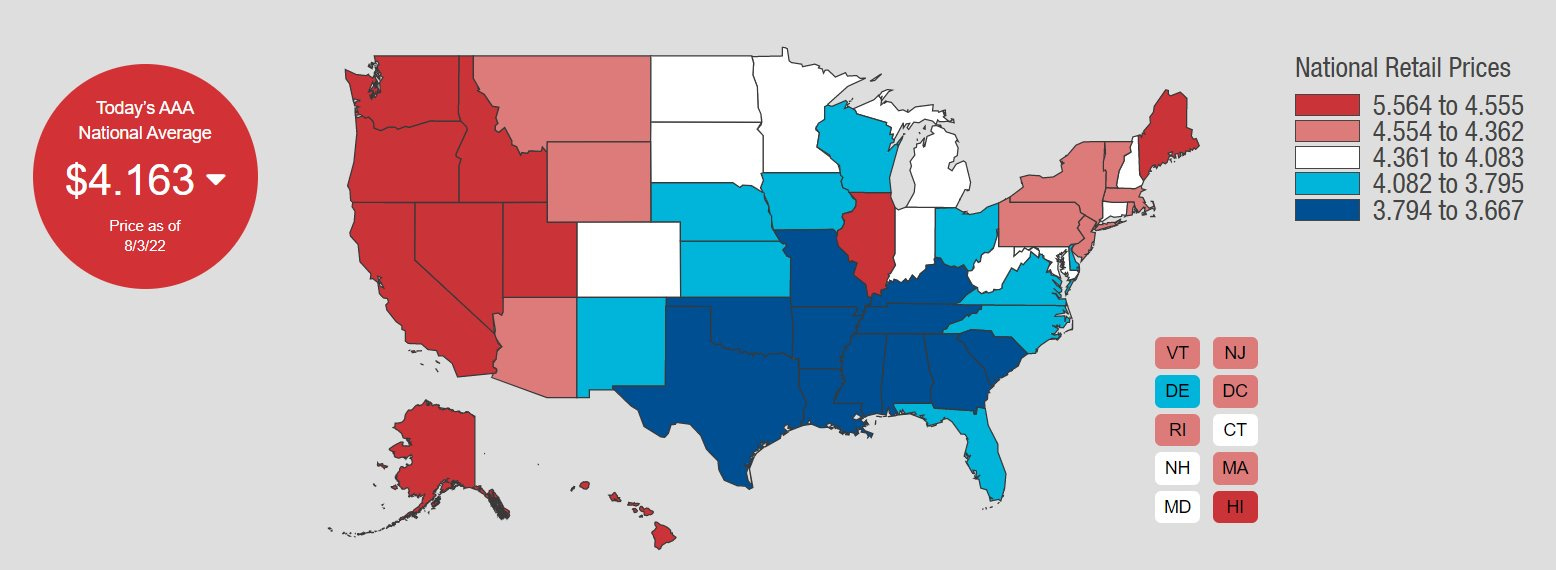 1. Pump relief. The cost for a gallon of gas has declined for 50 days straight (from outrageously high levels). The national average is at $4.16 a gallon.