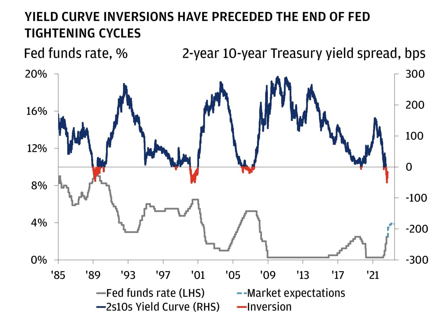 21. It's different this time. Yield inversions typically precede the end of Fed tightening cycles.