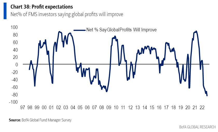 6. Global profits outlook. Fund managers expect global profits to fall over the next 12 months and "are more negative about the profit outlook than at any time in the 25-year history of the survey."