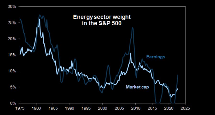 28. Energy stocks. From Goldman: "With confidence in durability of commodity prices prices, we see potential for Energy market-cap weighting within S&P 500 to further increase".