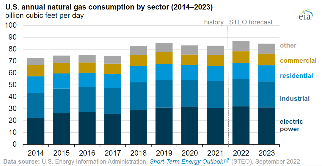 2. Record natural gas consumption. The US will also consume more natural gas than ever in 2022, according to EIA's forecast.