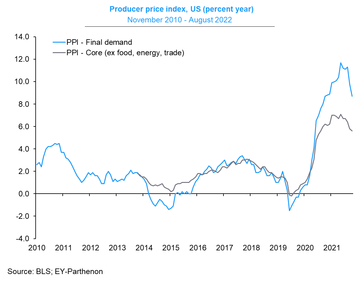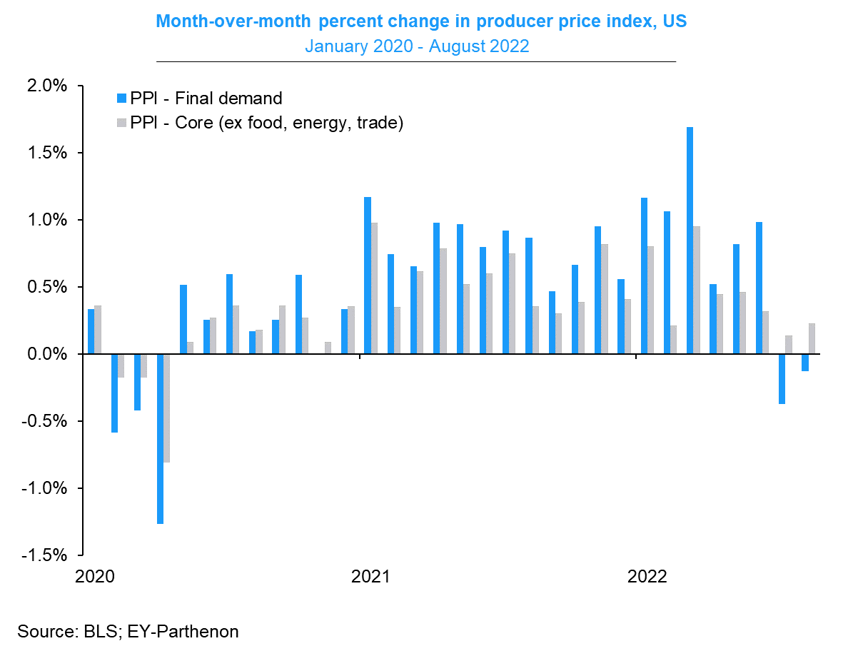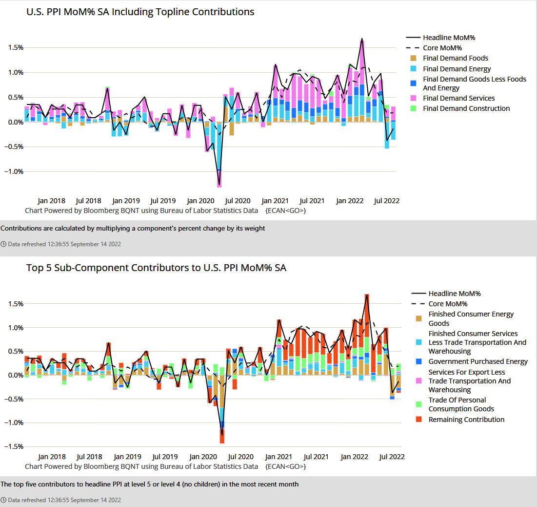 14. PPI divergence. For the second month in a row in August, producer prices for final demand in the US fell (-0.1%, in-line) while core prices increased (+0.4% vs. +0.3% expected).
